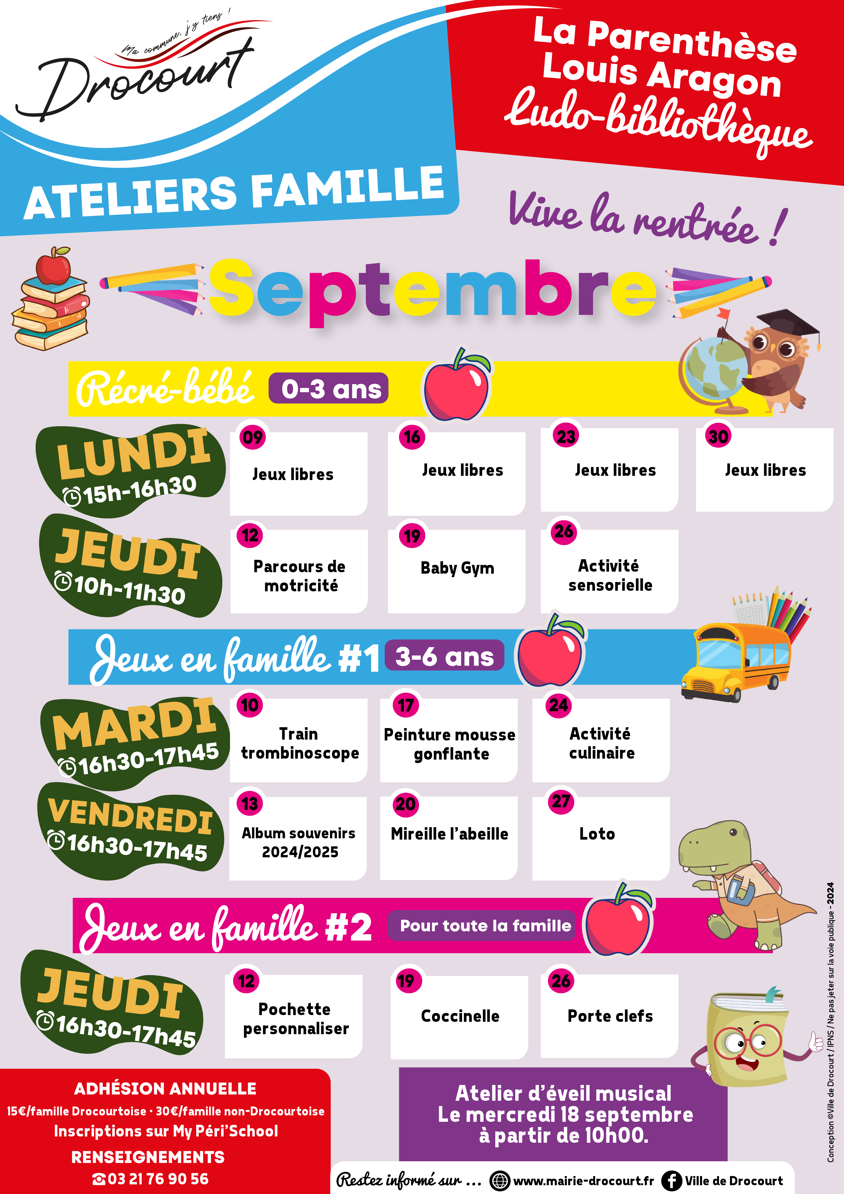 Pour les 0-3 ans (récré bébé) : lundi de 15h à